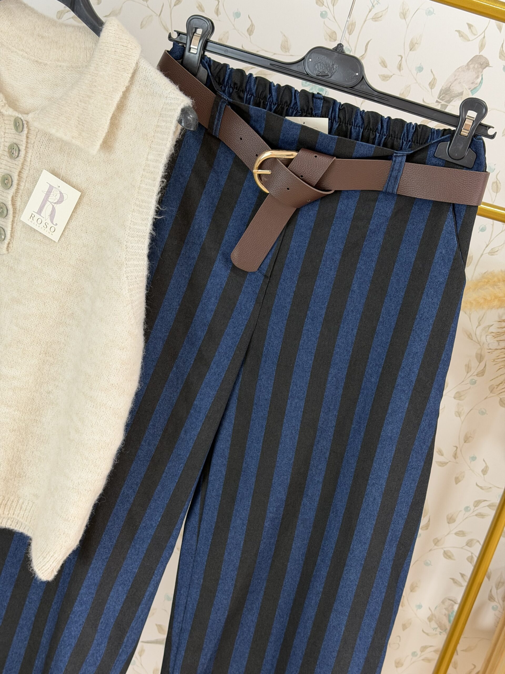 Pantalón con cinturón a rayas